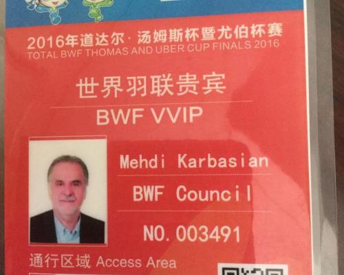در هيات رييسه جهاني بدمينتون kunshan. China شركت كردم. اتفاق بسيار مهم قهرماني كره جنوبي به جاي چين پس از سال ها بود . در جلسات برگزاري مسابقات المپيك در ريو برزيل اصلاحات در اساسنامه براي شفاف سازي وتغيير حسابرس از kPMG به علت عملكرد نامناسب در عدم افشا فساد در فيفا وبررسي عملكرد مسبقات ومالي بود.